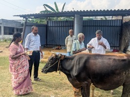 The ICAR-National Institute of Animal Nutrition and Physiology, Bengaluru organized one day Farmers-Scientist Interaction meet cum Input Distribution on (21.03.2025) scientific feeding for dairy farmers, We reached to remote villages(Gestampalli, Yalakallu, Vogu, Y.C Bandapalli, Chintamakulapalle etc) of V Kota, Chittoor, Dt Andra Pradesh and distributed Inputs (Rubber mat, Milk can, Fertimin plus powder, Ladies & school bags, Stationary kit, Veterinary medicinal kit, First aid kit) to selected SC Dairy farmers under Development Action Plan for Scheduled Caste (DAPSC). A total of 100 dairy farmers belonging to Scheduled caste benefitted in this program. This program is intended for educating farmers about scientific feeding of dairy animals.