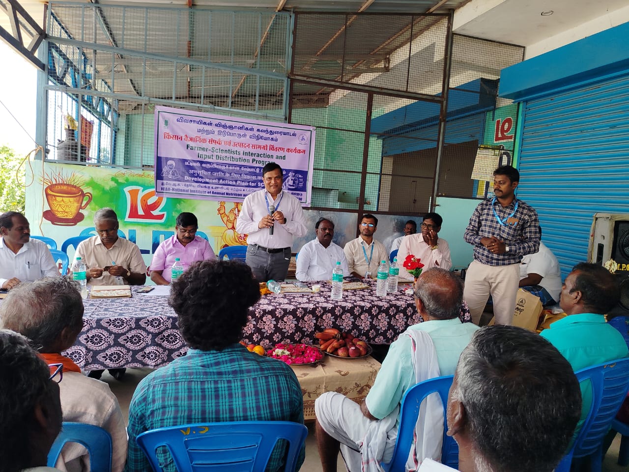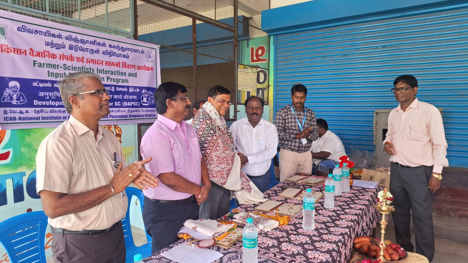 The ICAR–National Institute of Animal Nutrition and Physiology (ICAR–NIANP), Bengaluru, organized a one-day Farmer–Scientist Interaction Meet cum Input Distribution Programme under the Development Action Plan for Scheduled Castes (DAPSC) scheme on 18th September 2025 at V. Mamandur, Karunthalakurichi and Anumanandhal Kuppam villages of Kallakurichi District, Tamil Nadu, with a focus on scientific feeding practices and nutritional interventions for dairy cattle. The programme aimed to disseminate scientific knowledge on precision feeding, nutrient optimization and metabolic health management in dairy animals. A total of 150 Scheduled Caste dairy farmers actively participated in the programme and benefitted from the distribution of input kits, each containing 200 kg concentrate feed, 5 kg Fertimin Plus mineral mixture, a 20-litre capacity plastic milk can, 10-litre stainless steel bucket, rubber mat, deworming boluses, Projana veterinary capsules and a technical information leaflet. The event commenced with a welcome address by Dr. A. Arangasamy, Principal Scientist and Nodal Officer (DAPSC), who explained the objectives of the scheme and highlighted strategies to improve conception rate and milk yield at the field level. The programme was inaugurated by Dr. Artabandhu Sahoo, Director, ICAR–NIANP, who stressed the pivotal role of strategic nutritional management in improving milk yield, reproductive efficiency and animal welfare, and emphasized the importance of Fertimin Plus in correcting micronutrient deficiencies and enhancing rumen microbial efficiency. He also underlined the need for hygienic milking practices and clean milk production protocols and distributed the input kits to the farmers. Dr. K. Arunachalam, In-charge Dean, Veterinary College and Research Institute, Salem, delivered the presidential address emphasizing systematic deworming procedures in livestock health management. Mr. S. Karunanidhi, Additional Director of Agriculture (Retd.), delivered a special address on the importance of adopting modern technologies and integrated farming systems for sustainable livelihoods. Dr.S.Vishnukanthan, Joint Director, Animal Husbandry Department, Kallakurichi, felicitated the gathering and elaborated on vaccination schedules and government schemes available for farmers. Mr. Mani Bharathi, Bank Manager, Tamil Nadu Grama Bank, Nainarpalayam, explained the procedures for availing livestock and agricultural loans. Dr. P. Murali, Assistant Professor, Veterinary College and Research Institute Salem, delivered a lecture on scientific feeding practices for better production and proposed the vote of thanks. Further, Er. Vignesh S.K., President, Lions Club, Kallakurichi, Mr. Selvaraju, NGO representative, Sankarapuram and participated scientists interacted with farmers and expressed their satisfaction with the benefits extended to the Scheduled Caste beneficiaries under the DAPSC scheme, emphasizing the importance of such outreach programmes in promoting livestock-based livelihood enhancement. This event served as an effective platform for technology transfer and demonstrated ICAR–NIANP’s commitment to inclusive agricultural development through science-led interventions, representing a significant step in translating laboratory research into field-level impact and ensuring nutritional equity and productivity enhancement in smallholder dairy systems.